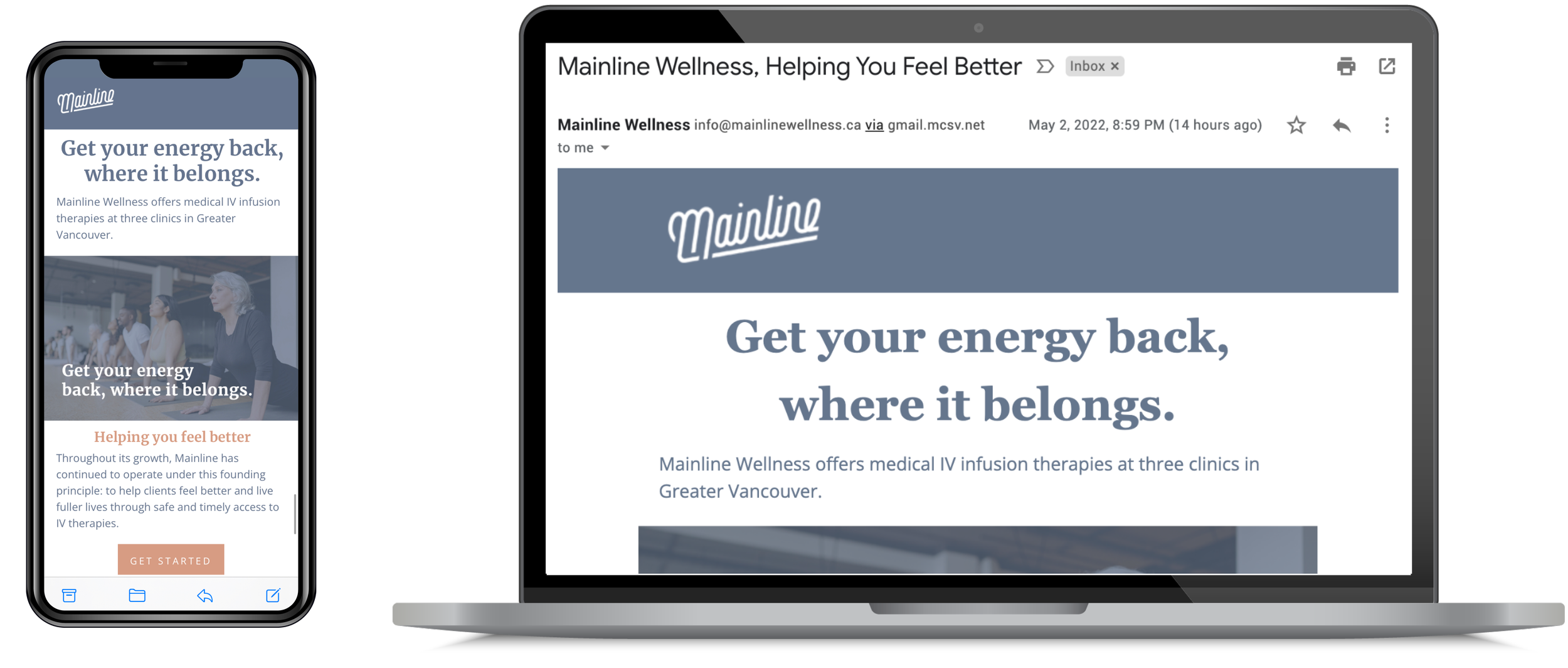 Mainline has become synonymous with expertise in IV therapies across the lower mainland in British Columbia. Mainline restores health and changes lives. As demand for Mainline increases, time to dedicate to marketing diminishes. Dr. Davidson built Mainline from the ground up and knew that the initial brand aesthetic and website no longer aligned with the business. Market confusion about the benefits of IV infusion therapies persists and iron deficiency is not given proper respect for its negative impact on quality of life.